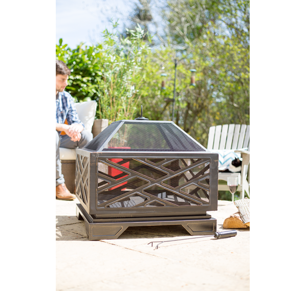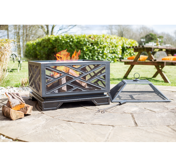 Огромный уличный камин Brooklyn c декоративной решёткой. Очаг способен обогреть большую компанию друзей, а дрова будут всегда под рукой.