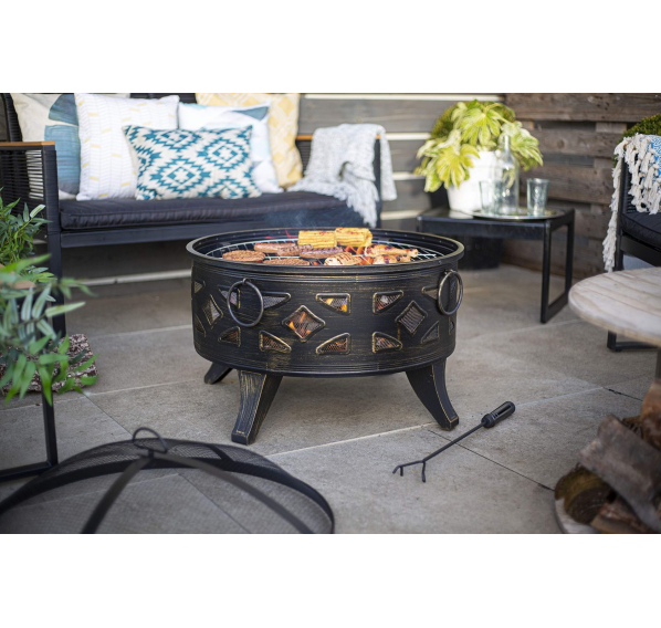 Эта классическая глубокая чаша для костра под бронзу станет центральным элементом вашего патио. Diamond — чаша оптимальной формы и размера, чтобы согреть вас прохладным вечером. Проникающий через боковой сетчатый узор свет создаст романтичную атмосферу, а крышка пламегаситель защитит от искр.