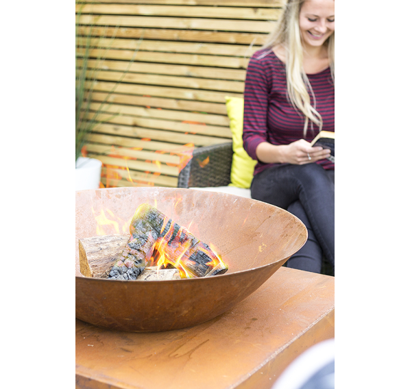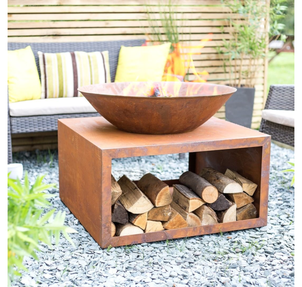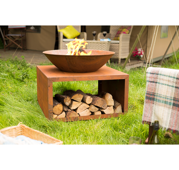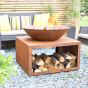 Огромная чаша для костра Moho с большой дровницей в красивом натуральном цвете. Очаг способен обогреть большую компанию друзей, а дрова будут всегда под рукой.