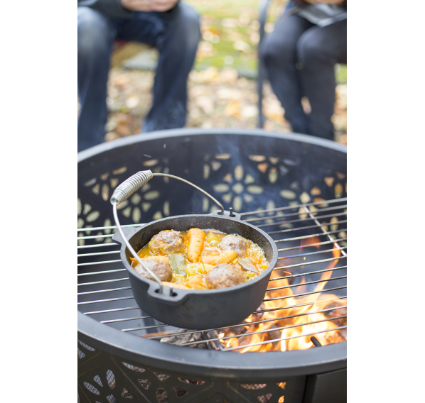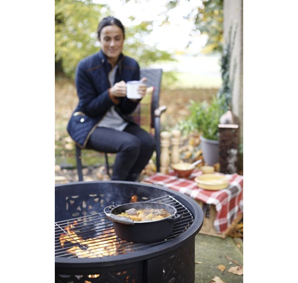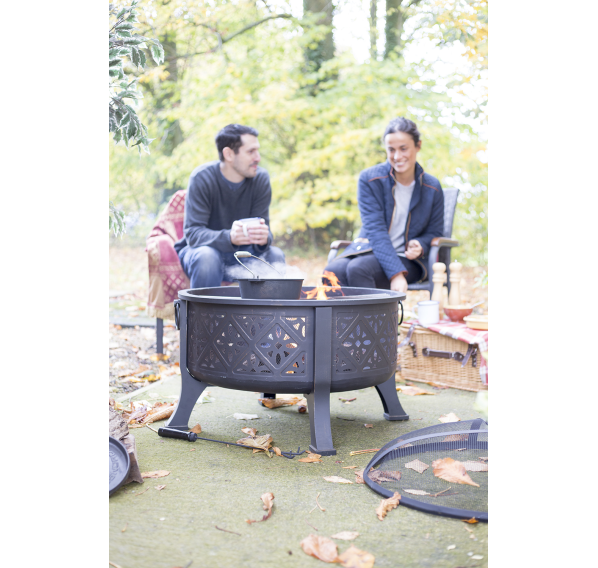 Вдохновленный традиционным марокканским искусством, он имеет сложный узор по всей поверхности чаши, создавая мягкие блики в сумерках. Расслабьтесь у огня под звёздами или используйте решётку-гриль для приготовления пищи.