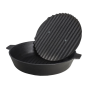 Чугунная крышка-пресс прекрасно подойдёт для чугунных сковород-гриль диаметром от 24 см. Крышка-пресс своим весом прижимает продукт к сковороде, тем самым ускоряет процесс готовки, более равномерно прожаривает, а также наносит узнаваемый гриль-рисунок.