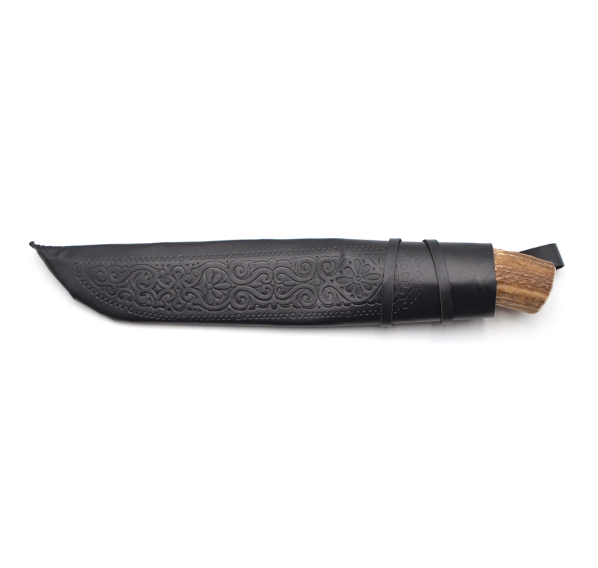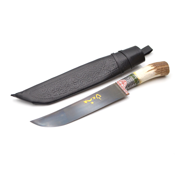 Узбекский нож "Пчак" — национальный узбекский нож, который имеет прямой широкий клинок из прочной подшипниковой стали с односторонней заточкой, в связи с этим точить нож Вы будете крайне редко. Рукоятка из рога оленя имеет привлекательный внешний вид, высокую стойкость к внешним воздействиям и высокую износостойкость.