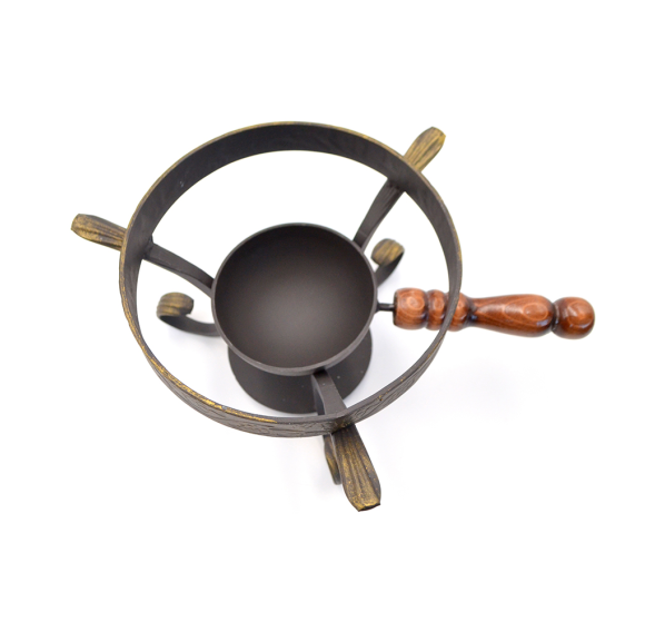 Кованая подставка под садж сковороду со съёмным зольником в классическом исполнении. Подставка настолько надёжная, что выдержит не только саджи, но и чугунные сковороды.
