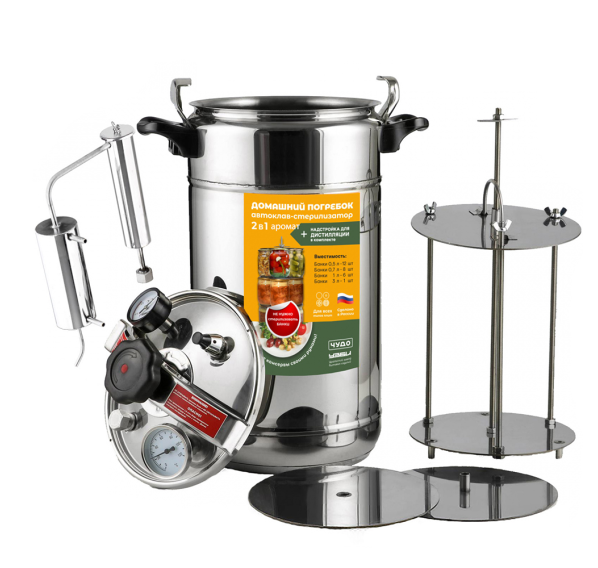 Помните неповторимый вкус домашней тушёнки? Сочная, с перечными нотками — такая нежная, что сразу тает на языке. Но Вы, скорее всего, помните, ещё и сколько хлопот Вам приносило консервирование. Банки простерилизовать, довести все ингредиенты до готовности, всё уложить, закатать… И этот ритуал нужно было повторить несколько раз! С устройством производства УЗБИ Вы забудете прежние хлопоты и вновь ощутите неповторимый вкус огурцов, помидоров, мяса и рыбы из банок. Также домашний автоклав подходит и для дистилляции — в комплекте имеется джин-корзина "Аромат" и сухопарник.