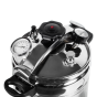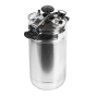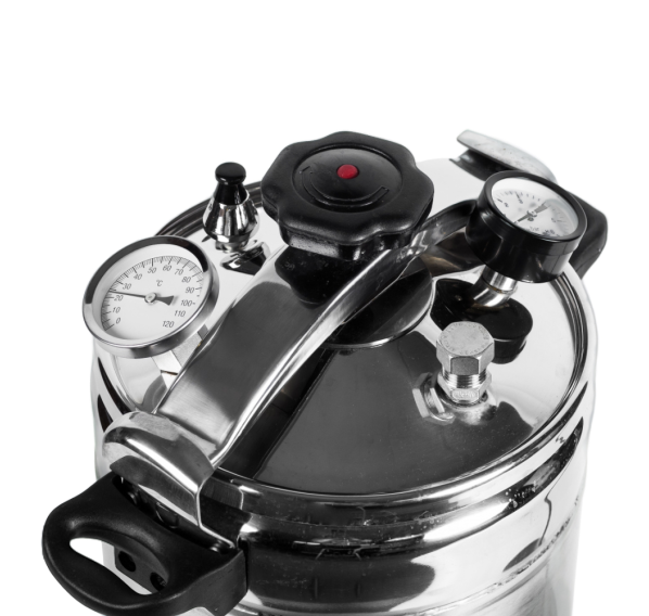 За герметичность автоклава отвечает крышка с силиконовым уплотнительным кольцом, которая надёжно крепится на баке с помощью специального зажима в центре крышки и ушек на корпусе автоклава для фиксации. Для правильного использования в конструкцию встроен манометр для отслеживания давления, клапан сброса избыточного давления и биметаллический термометр.