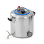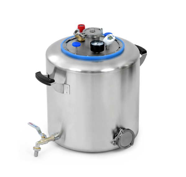 Крепкие ровные швы благодаря плазменной сварке не подвержены ржавлению. Крышка крепится намертво, риска стравливания нет. Толщина крышки — 3 мм. Она не выгнется даже при избыточном давлении. Края крышки фиксируются в пазах, где находится силиконовое уплотнение, что гарантирует абсолютную герметичность. Для правильного использования в конструкцию встроен манометр для отслеживания давления, клапан сброса избыточного давления и цифровой термометр. Кламповое соединение предназначено для установки дистиллятора и расширения возможностей Вашего автоклава.