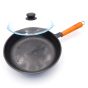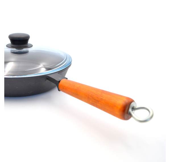 Чугунная сковорода БЛМЗ 240*50 с деревянной ручкой и стеклянной крышкой