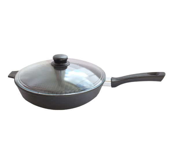 Чугунная сковорода изготовлена из литого чугуна, термообработанная. Подобная сковорода наносит узнаваемый гриль-рисунок на поджариваемый кусок мяса. Чугун по своей природе имеет антипригарные свойства, что не позволяет Вашей пище пригореть во время готовки.