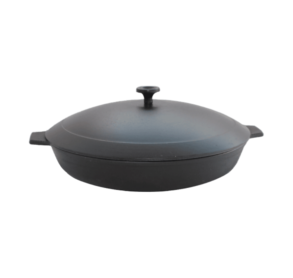 Чугунная сковорода изготовлена из литого чугуна, термообработанная. Чугун по своей природе имеет антипригарные свойства, что не позволяет Вашей пище пригореть во время готовки.