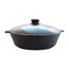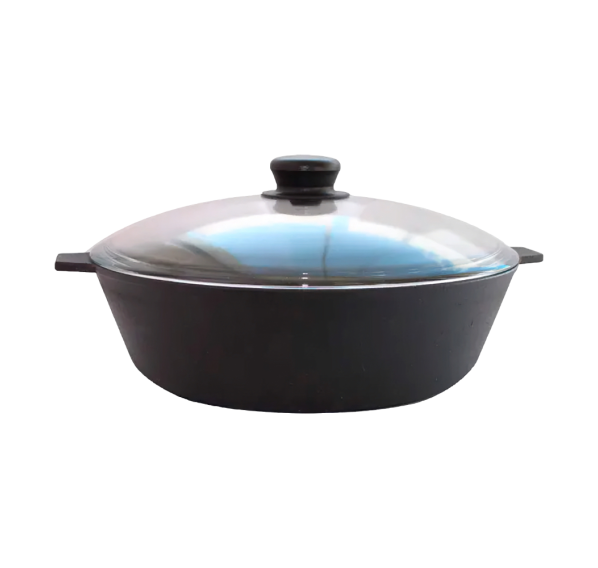 Чугунная сковорода изготовлена из литого чугуна, термообработанная. Чугун по своей природе имеет антипригарные свойства, что не позволяет Вашей пище пригореть во время готовки.