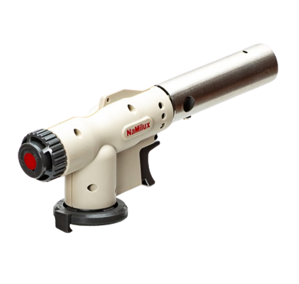 Многофункциональная газовая горелка подходит для приготовления пищи, удаления лакокрасочного покрытия, сварки стыков труб, сжигания травы и мусора. Газовая горелка NaMilux NA-T3422RF способна выдать температуру пламени +1400°C.