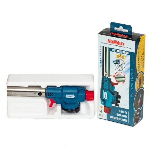 Многофункциональная газовая горелка подходит для приготовления пищи, удаления лакокрасочного покрытия, сварки стыков труб, сжигания травы и мусора. Газовая горелка NaMilux NA-T3722RF способна выдать температуру пламени +1200°C.