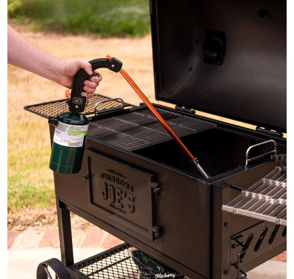 Легко воспламеняйте древесину и древесный уголь с помощью газовой горелки Oklahoma Joe's. Просто возьмитесь за эргономичную ручку, нажмите предохранительный спусковой крючок и нажмите кнопку зажигания, чтобы в течение нескольких минут поджечь топливо.