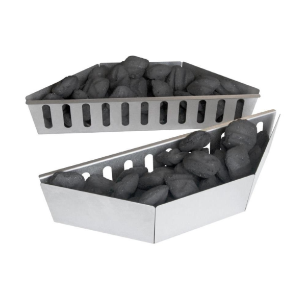 Комплект лотков-разделителей для угля Napoleon — отличное решение для управления прямым и непрямым методами приготовления на гриле. Лотки изготовлены из оцинкованной стали, поэтому отличаются прочностью и долговечностью. Достаточно наполнить их горящими угольными брикетами и установить на решётку для угля. Лотки можно расположить в центре для создания области прямого жара прямо над ними, или разнести по краям котла, чтобы использовать непрямой метод приготовления. Лотки-разделители поставляются комплектом из 2 шт.