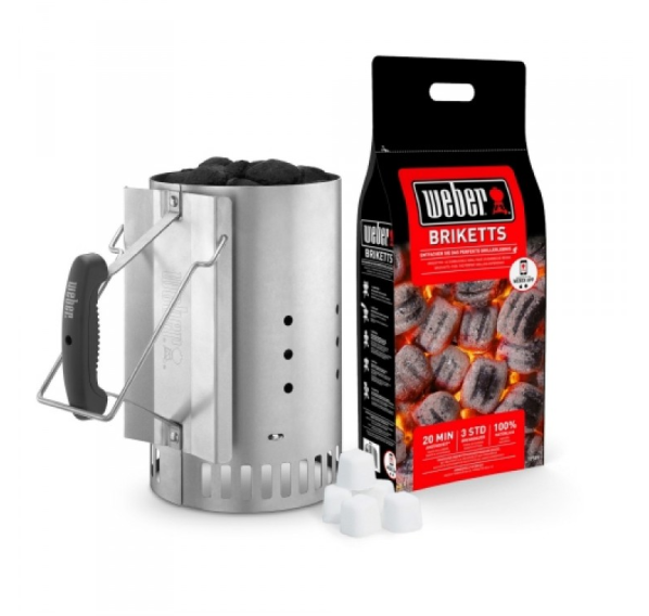 Благодаря стартеру для розжига Weber, угольные брикеты или уголь можно разжечь быстрее, чем, например, с помощью жидкости для розжига, причём прокалятся они равномернее. К тому же при этом не используется никакой химии. Просто заполните трубу стартера угольными брикетами, поместите под него кубики для розжига или смятые газеты и подожгите их. Больше ничего не требуется. Около 15 минут и брикеты полностью разгорятся, и Вы сможете высыпать их в котел гриля.