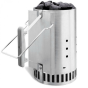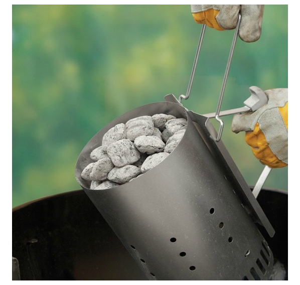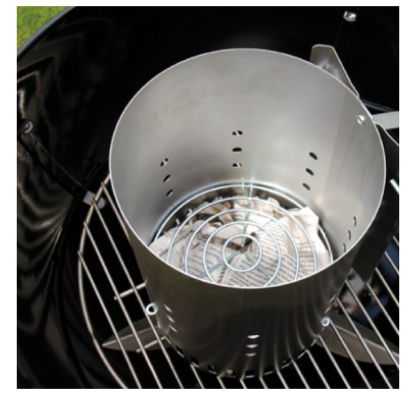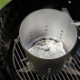 Благодаря стартеру для розжига Weber, угольные брикеты или уголь можно разжечь быстрее, чем, например, с помощью жидкости для розжига, причём прокалятся они равномернее. К тому же при этом не используется никакой химии. Просто заполните трубу стартера угольными брикетами, поместите под него кубики для розжига или смятые газеты и подожгите их. Больше ничего не требуется. Около 15 минут и брикеты полностью разгорятся, и Вы сможете высыпать их в котел гриля.