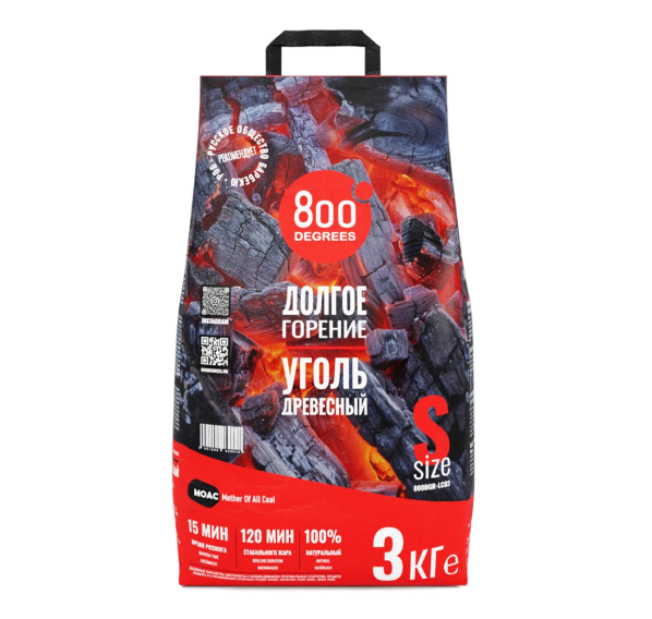 Кусковой древесный уголь 800 Degrees подходит для любых мангалов и грилей. Уголь разжигается за 15 минут и способен поддерживать жар в течение 2-3 часов.