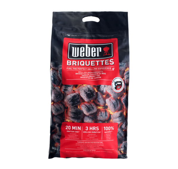 Самое эффективное топливо от компании Weber на сегодняшний день. Угольные брикеты Weber дают тлеющие угли всего за 20 минут. Специальная форма брикетов — квадратные подушечки — даёт больший результат, при меньшем расходе углей. Подходят для прямого и косвенного методов приготовления, а также пригодны для повторного использования при неполном прогорании.