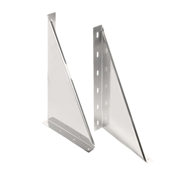 Крепление основное является силовым элементом. Переносит вес вышерасположенной конструкции на стену здания. Состоит из двух подкосов с монтажными отверстиями. Подкосы жёстко закрепляются на стене здания и выполняют функцию опорных элементов. Площадка закрепляется на подкосах болтами с гайками. Минимальное расстояние от опрной стены здания до закрепляемого на ней дымохода составляет 60 мм. За счёт конструктивной особенности входящей в состав основного крепления площадки может производиться регулировка дымохода относительно опорной стены здания с шагом 80 мм. Крепления устанавливаются через 3 пог. м вертикального дымохода. Максимально допустимая весовая нагрузка 120 кг.