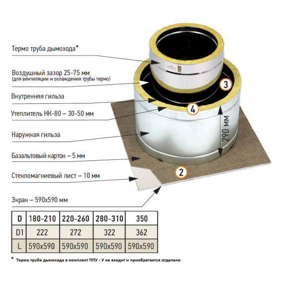 Проход перекрытия универсальный утепленный ППУ-У 590х590 D350 (круг)