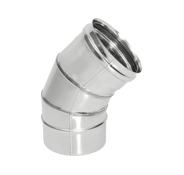 Отводы предназначены для изменения направления дымохода на требуемый угол. Изготавливаются из цилиндрических секций, соединённых шовной сваркой. Отводы 45° состоят из двух сегментов.