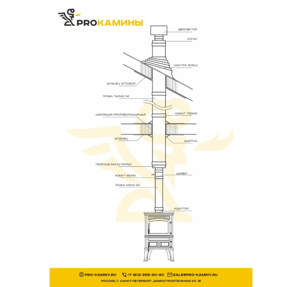 Дымоход для печи через крышу д120 5м aisi430 0,8мм