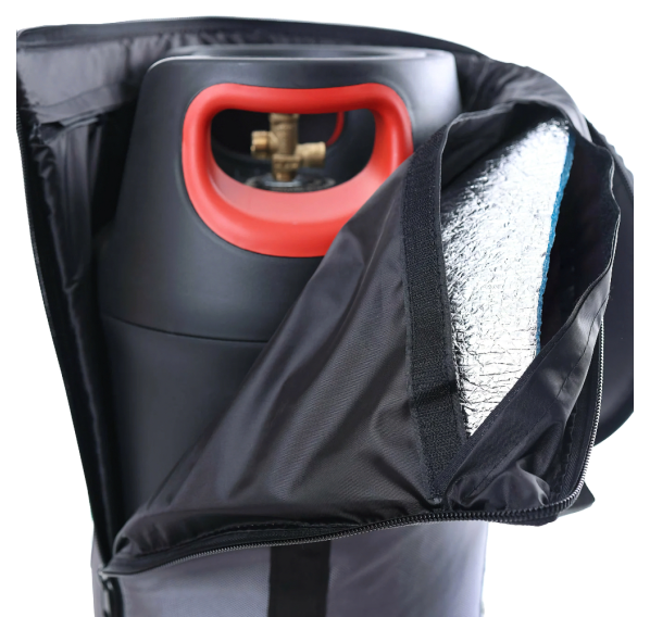 Защитный термочехол для хранения и транспортировки газового баллона 18 л. Изготовлен из ультрапрочного водоотталкивающего материала оксфорда с полиуретановым покрытием. Подойдёт для стального и композитного баллона. Незаменим в походе, на охоте или рыбалке, особенно в зимнее время. Термочехол — это защита баллона от механических повреждений, грязи и солнечных лучей. Разработан по принципу "термоса" и защищает баллон от температурных перепадов, сохраняет тепло и предотвращает замерзание газа при температуре воздуха до -50°С. Усиленное дно, плюс трехслойная конструкция стенок — внешняя оболочка, термозащитная пластина и внутренняя подкладка. Отстегнув термопластину, чехол можно стирать в стиральной машине.