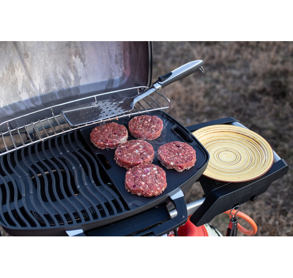 Двухсторонняя чугунная планча для гриля Napoleon TravelQ 285 имеет c одной стороны гладкую, а с другой ребристую поверхность. На данном аксессуаре Вы можете готовить восхитительные завтраки: жарить яичницу, блины, купаты, бекон; делать сэндвичи, бургеры, стейки. Это большая и удобная чугунная планча с огромными возможностями. В планче предусмотрены отверстия для избыточного сока от готовящихся продуктов.
