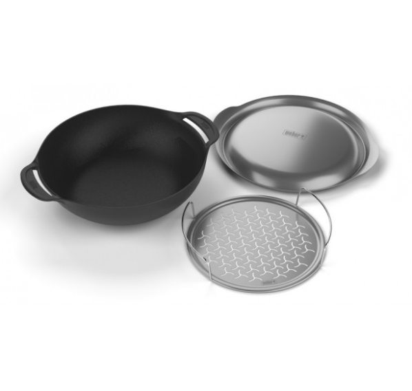 Вок разработан специально для угольных и газовых грилей Weber, оснащенных решетками системы GBS (Gourmet BBQ System) со съемным центральным модулем. Благодаря покрытию из фарфоровой эмали вок очень легко очищается.