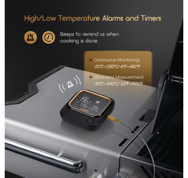 Термометр имеет магнитную нижнюю панель для более удобного использования, разместите его на любой металлической поверхности для повышения эффективности при приготовлении барбекю или гриля.
