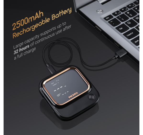 Термометр оснащён литиевой аккумуляторной батареей ёмкостью 2500 мАч, которая может работать около 32 часов при полной зарядке. Вам больше не нужно тратить дополнительные деньги на замену батареек. Для зарядки термометра предусмотрен кабель в комплекте.