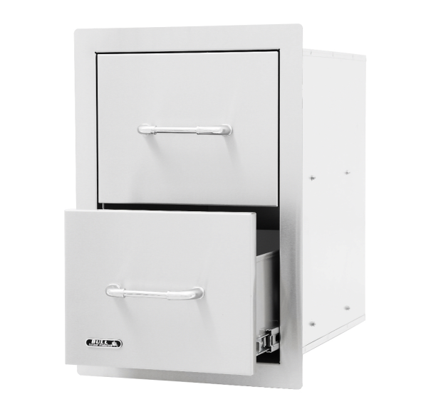 Двойной вертикальный ящик Bull — модульный элемент уличной кухни. В ящиках Вы можете хранить посуду, специи и другие необходимые аксессуары для приготовления на Вашей кухне. Ящики и рамка выполнены из нержавеющей стали.