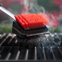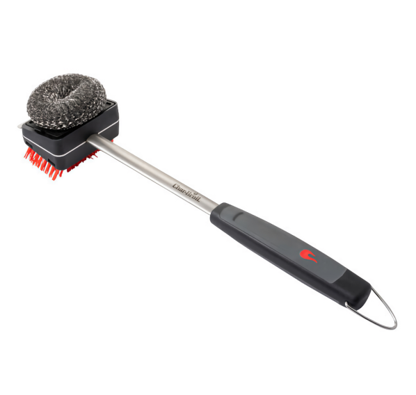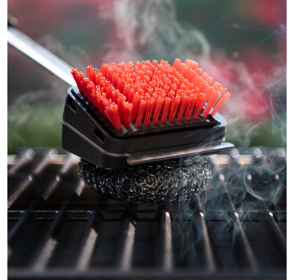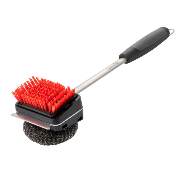 Двухсторонняя щётка подходит как для горячей, так и для холодной чистки. Используйте нейлоновую сторону для остывших, а проволочную для ещё горячих решёток. Имеет удобную эргономичную ручку. Обе стороны имеют съёмную часть для лёгкой очистки и замены. Ярко-красные нейлоновые щетинки в 5 раз толще аналогов, что делает их заметнее, а использование щётки безопаснее. При этом обе стороны щётки рассчитаны на более чем 15000 циклов без выпадения щетинок. Скребок щётки поможет справиться с особо сильным нагаром.