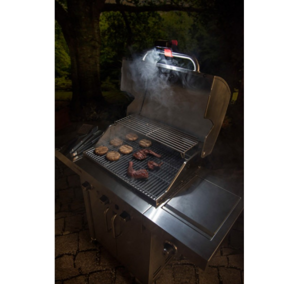 Универсальный фонарь, пристёгивающийся к ручке гриля. Снабжён магнитом для крепления к металлическим частям. Работает от батареек типа ААА (в комплект не входят). Подходит практически ко всем моделям большинства производителей.