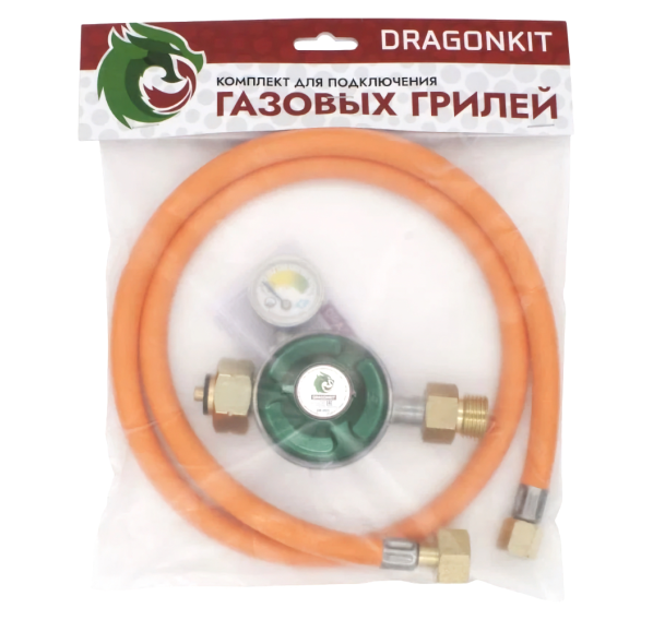 Газовый шланг Dragonkit с редуктором предназначен для газовых грилей Napoleon и Weber. Комплект позволяет перевести газовый гриль с резьбовых баллонов (картриджей) на обычные пропановые стальные или композитные баллоны.