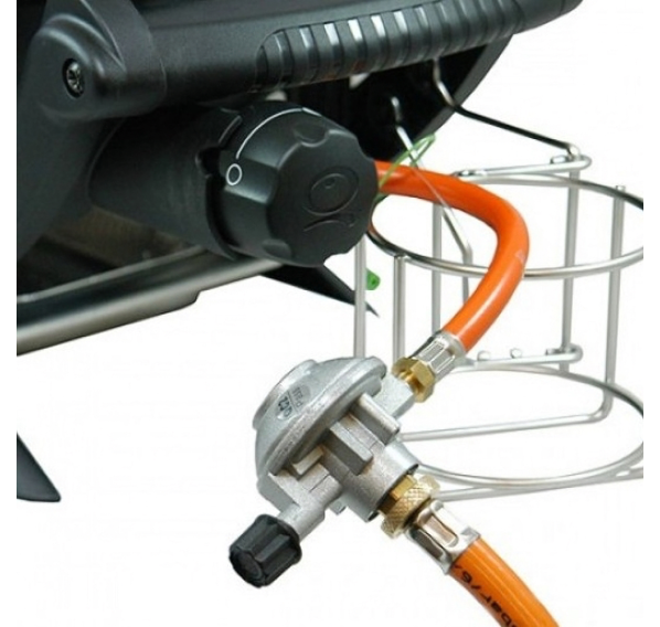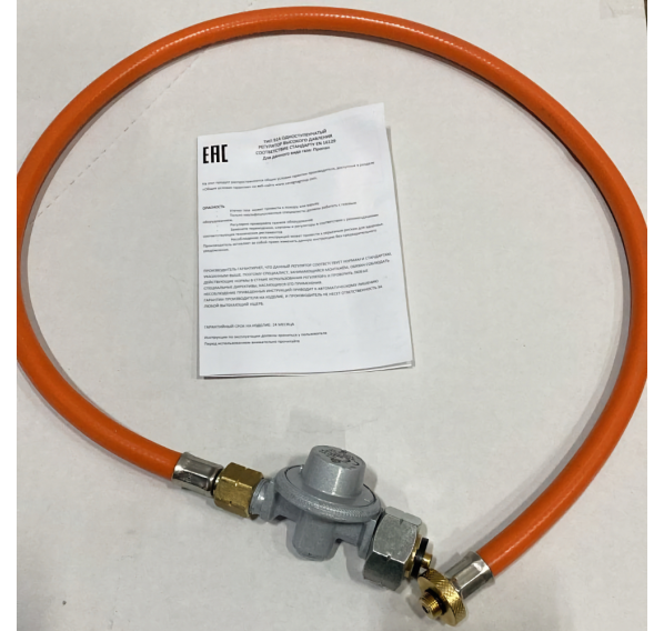 Гибкий газовый шланг, окрашенный в ярко-оранжевый цвет. Оснащён редуктором, снижающим давление газа на выходе, и тем самым обеспечивающим безопасность использования газового баллона. Трубки присоединены к фланцам с помощью металлических хомутов. Шланг длиной 0,9 м позволяет подключить полноразмерный газовый баллон любой ёмкости.