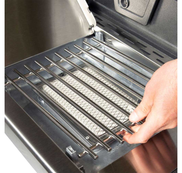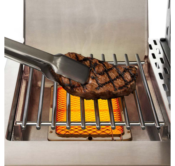Технология инфракрасной боковой горелки Broil King даёт Вам возможность быстро запечатать стейки для сохранения сочности мяса. Инфракрасная горелка может выдать температуру до 927°С. В комплекте с горелкой Broil King поставляется профессиональная решётка из нержавеющей стали 9 мм размерам 24,5x30,3 см, а также поддон для жира. Горелка монтируется вместо газовой конфорки в боковой столик.