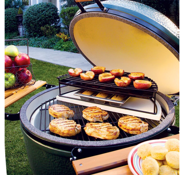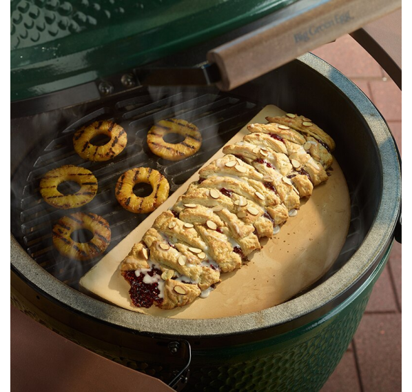 Керамический противень полукруглой формы. Подходит для гриля Large. Равномерно распределяет тепло по поверхности и предназначен для выпекания пирогов, блинчиков, рулетов и десертов. Занимает ровно половину рабочей поверхности гриля. На не занятом месте вы сможете продолжить готовить ваши любимые блюда барбекю.