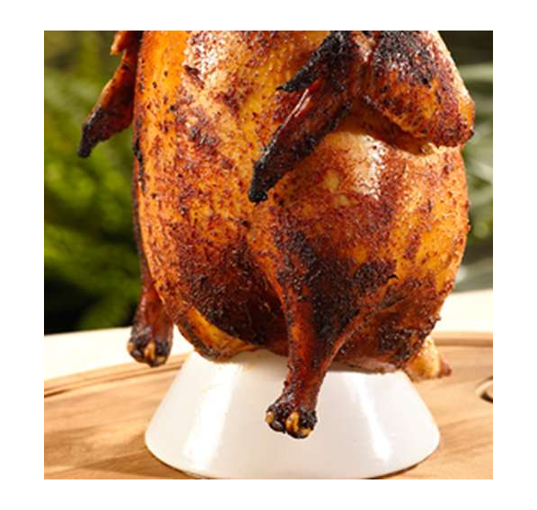 Приспособление от Big Green Egg для приготовления ароматной птицы — керамическая вертикальная подставка. С её помощью Вы получите идеально прожаренную курицу с аппетитной хрустящей корочкой. Кроме того в полость подставки можно налить пиво, вино или фруктовый сок для придания блюду дополнительного аромата.