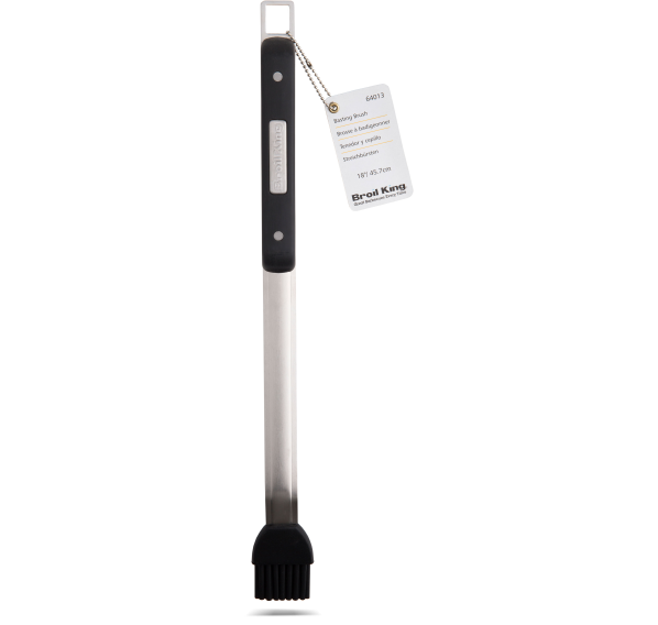 Кисть для нанесения соусов и маринадов от Broil King изготовлена из высококачественной нержавеющей стали и имеет силиконовый наконечник, способный выдержать температуру до 260˚C. U-образные щетинки позволяют эффективно зачерпывать соус и распределять его по блюду. Кисть имеет встроенный крючок и прочную каучуковую рукоятку с логотипом Broil King из нержавеющей стали.
