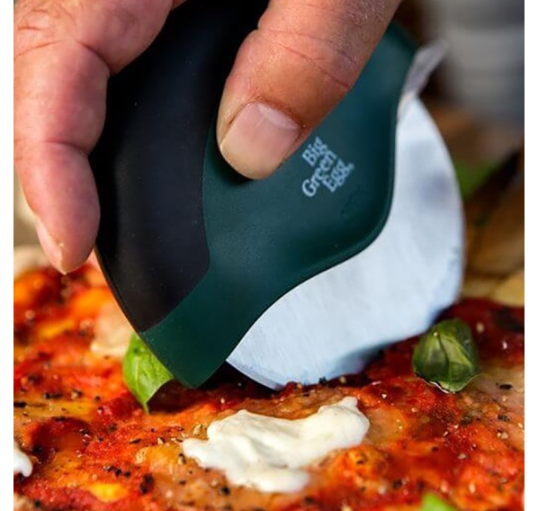 Еда вкуснее, когда делишься ею с друзьями. Особенно если это пицца. Но как поделить её поровну аккуратно и безопасно? В этом Вам поможет новый компактный нож для пиццы Big Green Egg. Этот профессиональный нож оборудован пластиковой рукоятью, которую удобно и безопасно держать в руке. Колёсико из нержавеющей стали позволяет легко нарезать пиццу на одинаковые куски. Угощайтесь.