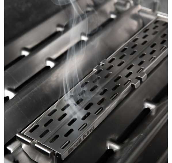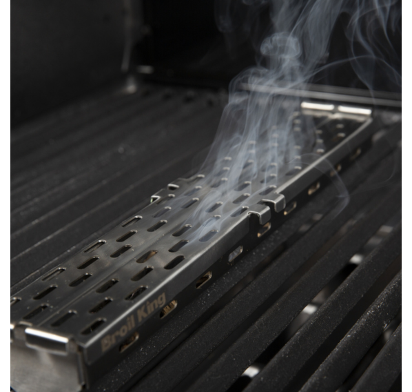 Ящик для копчения, предназначенный для пеллет придаст блюдам совершенно новый вкус и аромат. Простота изделия и потрясающие эффекты — главные достоинства этого аксессуара. Ящик сконструирован таким образом, что её можно ставить прямо на аромапластины или на решётку. Это очень простой способ начать своё приключение газового гриля в режиме копчения.