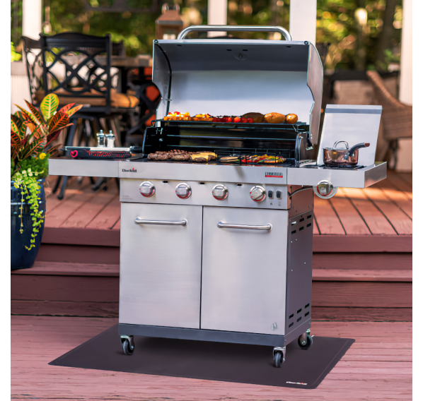 Защитите поверхность рядом с грилем от капель жира, упавших кусочков пищи и осадков с помощью специального коврика для гриля. Материал коврика устойчив к воздействию жара от гриля. Размеры коврика позволяют установить на него любой гриль Char-Broil.