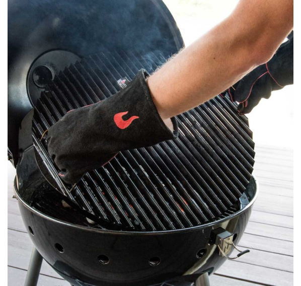 Кожаные перчатки — аксессуар, созданный для безопасного приготовления блюд на гриле и мангале. Перчатки надёжно защищают руки пользователя от жара и огня, предотвращают появление ожогов. Этими перчатками можно хвататься за горячую решётку гриля без вреда для рук.
