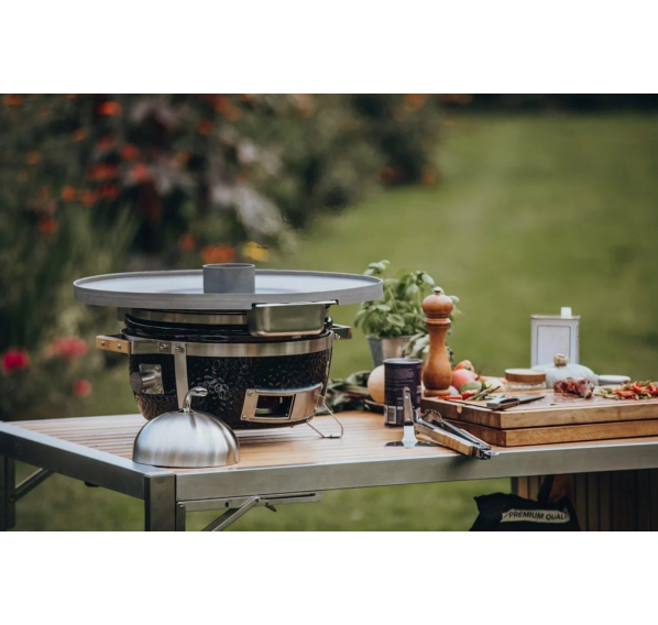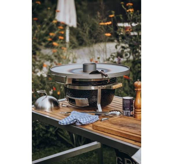 Кулинарный клош — незаменимый инструмент для большой стальной планчи, изготовленный из нержавеющей стали. Клош концентрирует тепло и влажность, идеально подходит для плавления сыра на котлете из бургера или приготовления овощей.