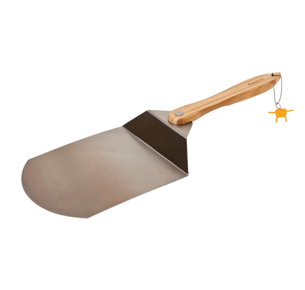 Лопатка для пиццы из нержавеющей стали с бамбуковой ручкой. С помощью этой лопатки Вы сможете легко положить лист с тестом на гриль или снять его. Это очень компактный инструмент благодаря складной ручке.