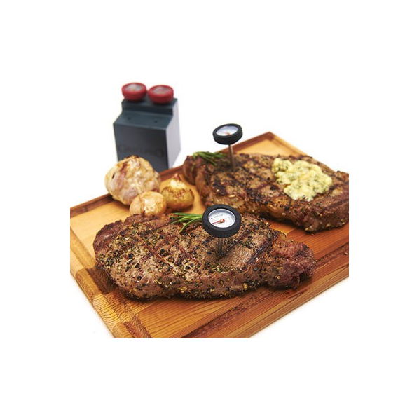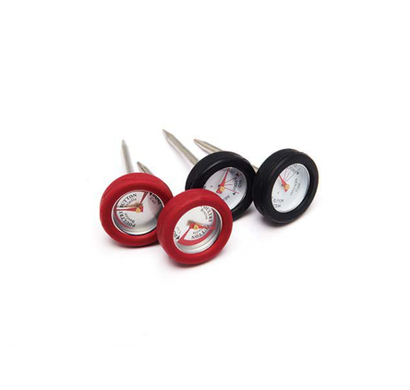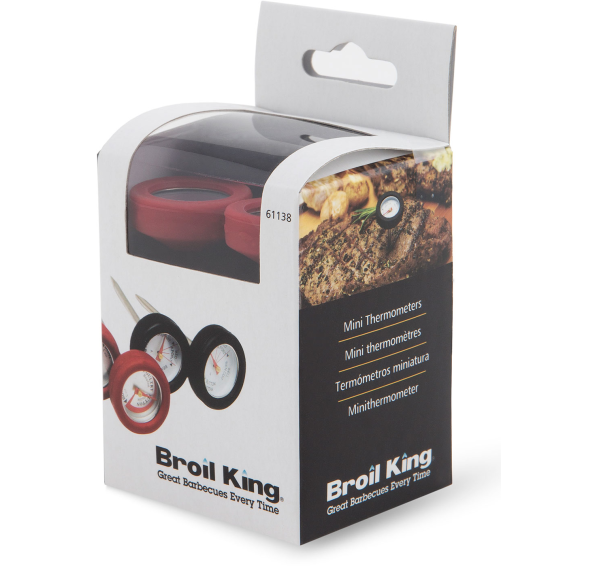 Термометры в количестве 4-х штук из силикона созданы для точного измерения температуры внутри мясных блюд. Черные термометры предназначены для измерения температуры внутри стейков, а красные — внутри птицы. Термометры для мяса в силиконовой оправе легко извлекаются из блюд и кусков мяса. В набор входит удобный контейнер, чтобы термометры было удобно хранить.