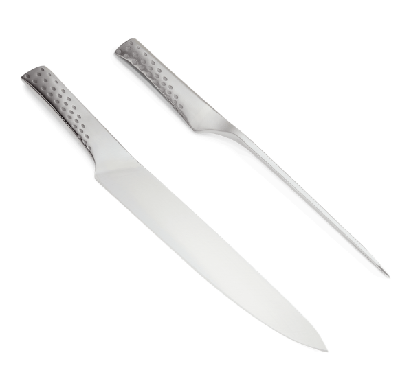 Нож для нарезки имеет длинное узкое лезвие и заострённый кончик, чтобы аккуратно прорезать мясо и отводить его от кости. Вместе с вилкой, предназначенной для удерживания мяса, набор для нарезки станет отличным дополнением к Вашим аксессуарам для гриля.