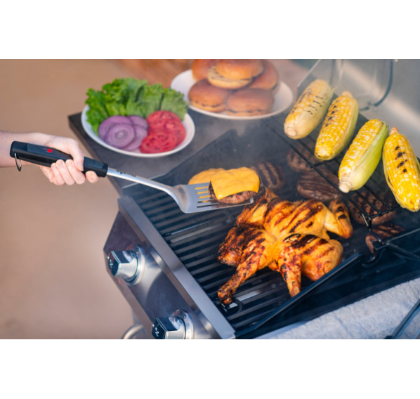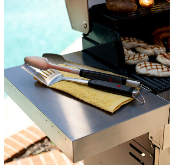 Набор инструментов Deluxe из двух предметов включает в себя лопатку и щипцы, которые позволят Вам с лёгкостью оперировать продуктами при готовке на гриле. Прорезиненные ручки инструментов не нагреваются.