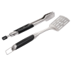 Набор инструментов Char-Broil из двух предметов из нержавеющей стали с обрезиненными рукоятками: щипцы с фиксатором закрытия, лопатка. На ребре лопатки расположена пилка для удобного разделения продуктов.